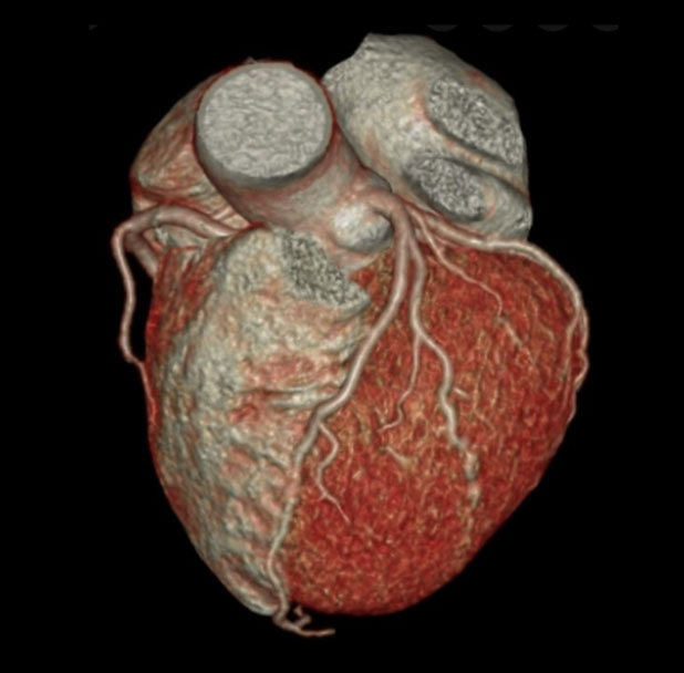 Mit modernen Computertomographie-Geräten können die Herzkranzgefäße auch nicht-invasiv (also ohne Herzkatheter) dargestellt werden.