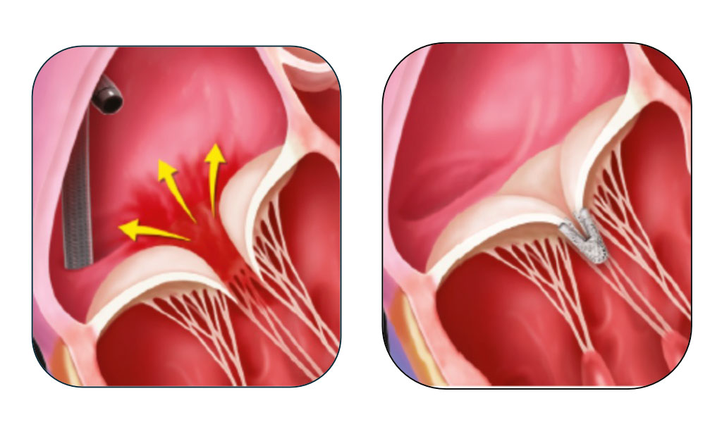 Die jeweilige Therapieoption wird basierend auf den Voruntersuchungen (Schluckultraschalluntersuchung, Links- und Rechtsherzkatheteruntersuchung, kardiale Computertomografie) im „Herz-Team“ festgelegt.